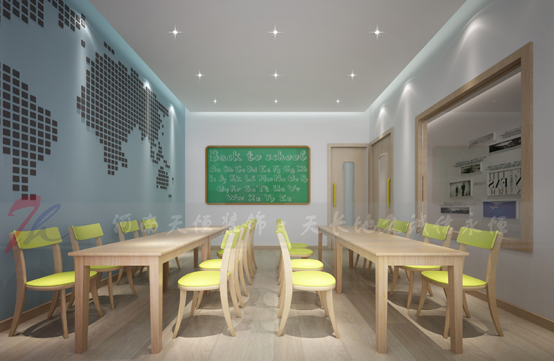 整個空間在色調上以白色為主,木紋搭配,純粹的白色配上溫暖的木材從而消除空間的壓迫性。黃綠藍顏色點綴,富有生機。 長葛立愛英語培訓學校 長葛立愛英語培訓學校 長葛立愛英語培訓學校